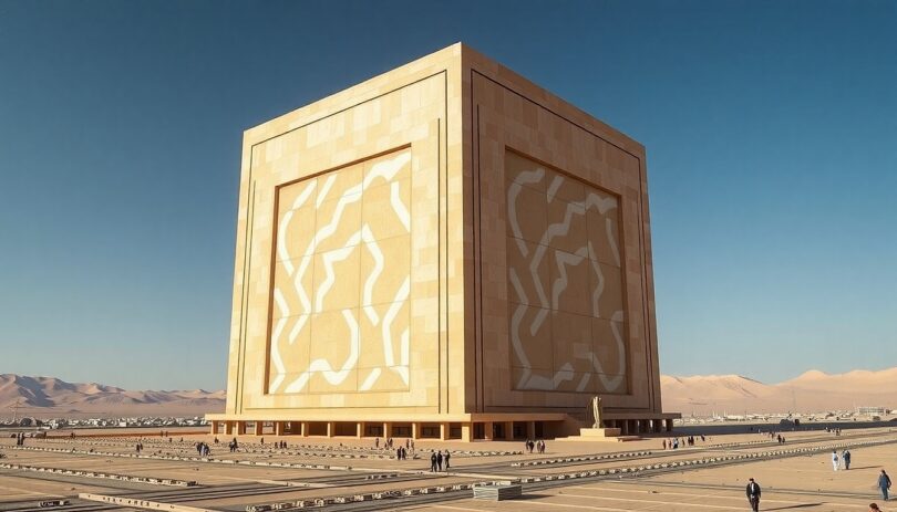 Uprostřed pouště vyrůstá geometrická megastruktura, která kombinuje monumentální architekturu s vizí soběstačného městského prostoru.